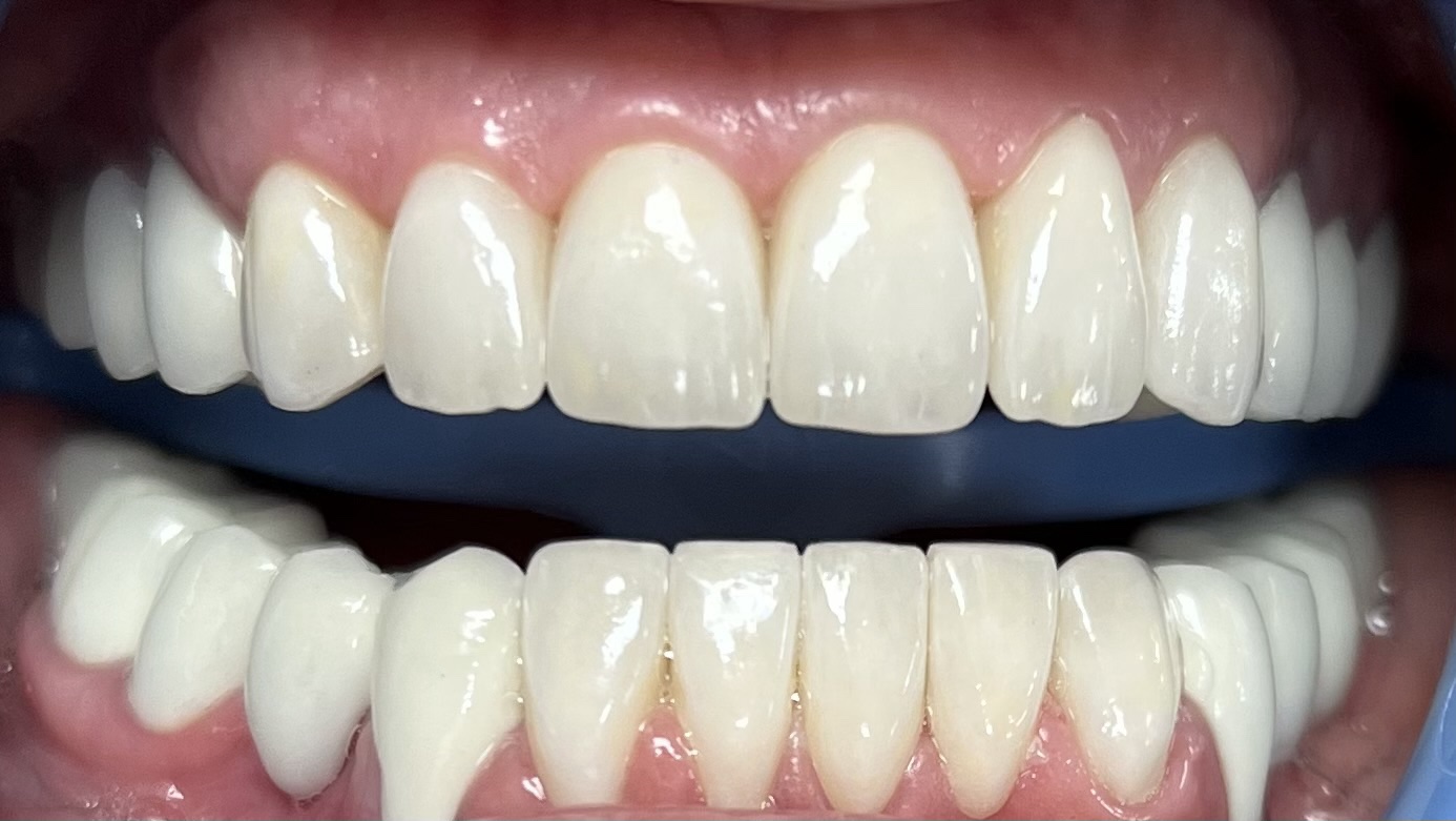 Наша дългогодишна пациентка, която ни потърси за цялостно възстановяване на естетиката и функционалността на своето съзъбие. Бяха изработени циркониеви конструкции във фронта и металокерамични конструкции в областта на задните зъби. Дамата се радва на здрава и красива усмивка и редовно ни посещава за професионално почистване, което би удължило живота на изработените конструкции. Случаят е дело на Д-р Ботев и Д-р Панайотова.